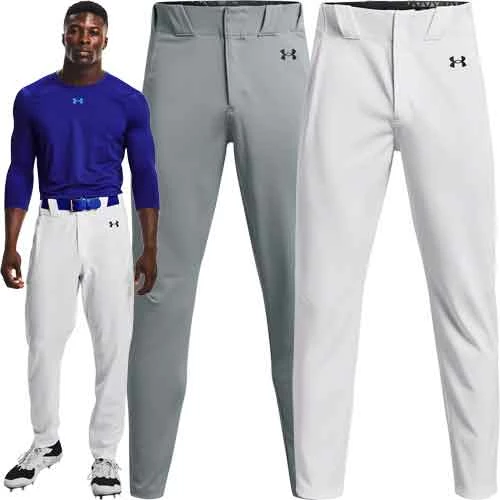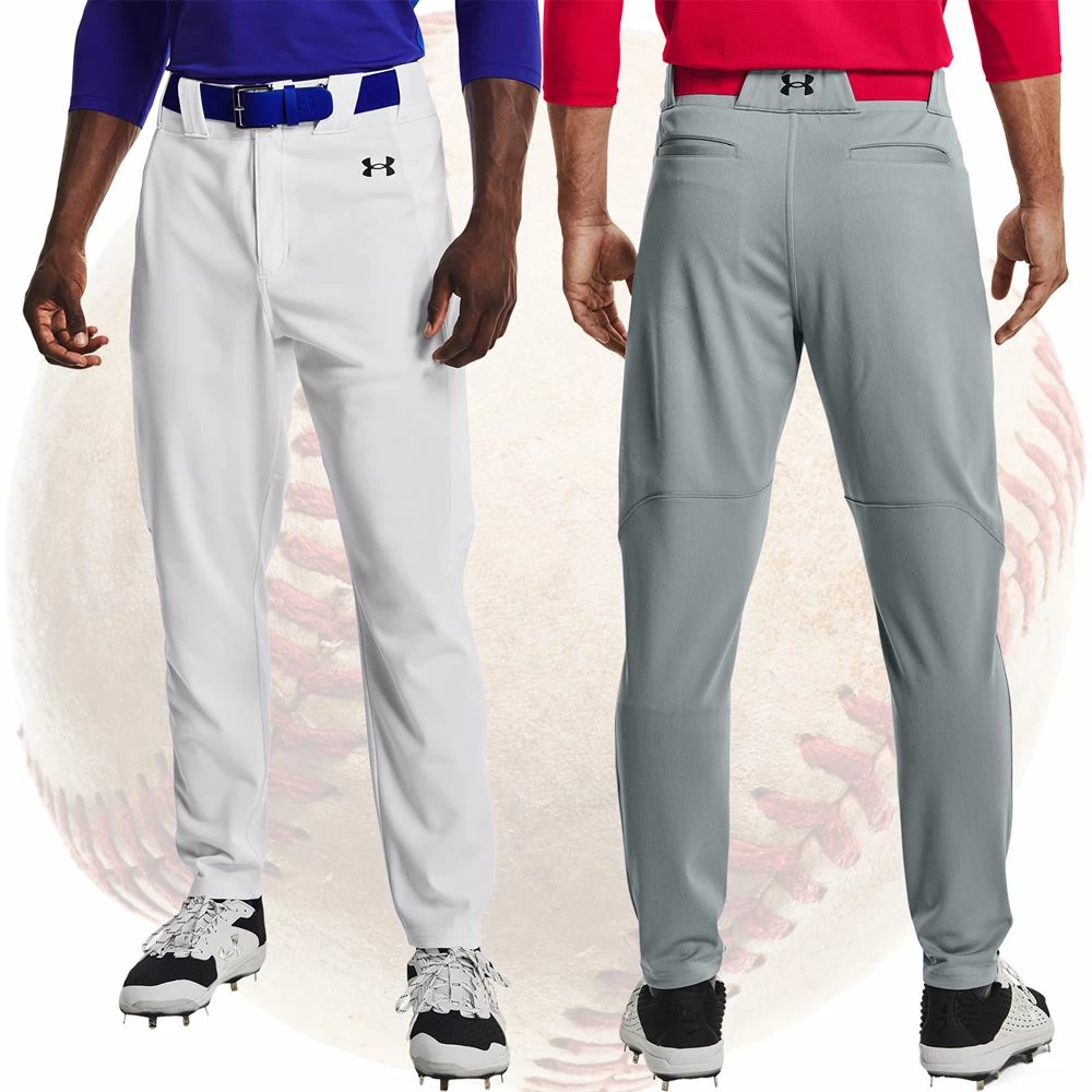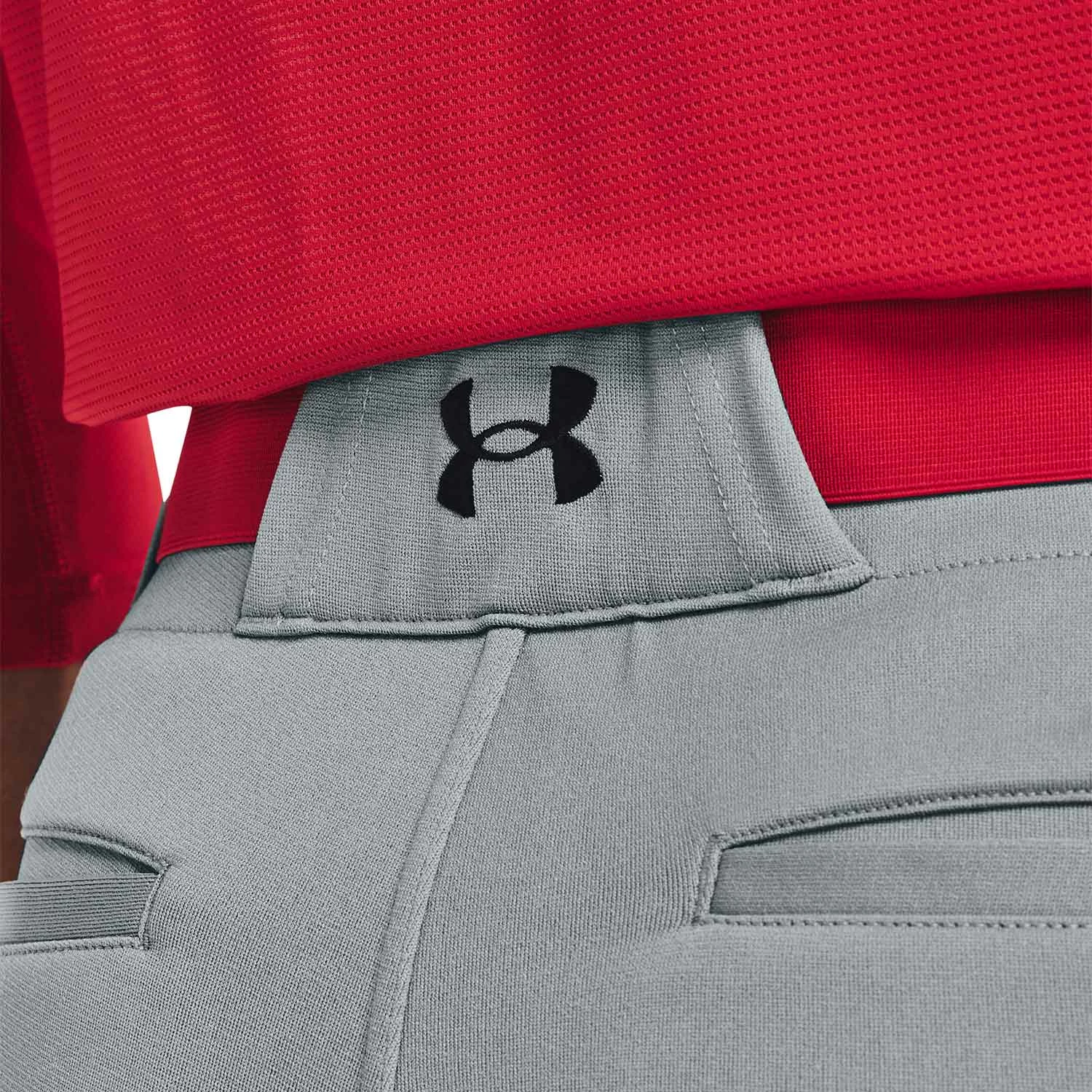 - Multi panel construction provides natural, ergonomic performance during movement. Stretch Engineered waistband contains a Silicon baseball themed lining that helps keep the jersey tucked in along with pro tunnel belt loops (belt not included). Color matching, two‐button snap closure with zipper fly. Two, inset back pockets. Small, embroidered Under Armour “UA” logo at the upper left leg and back center belt loop.